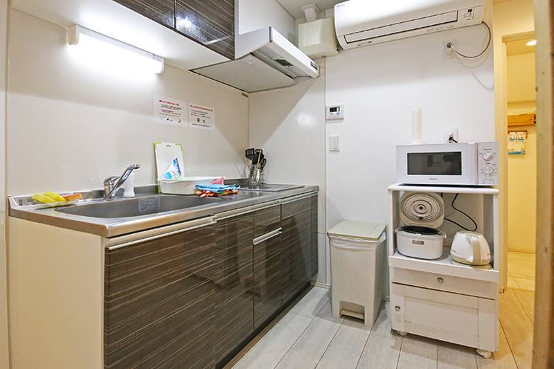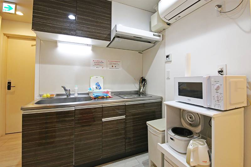 | キッチン | IHコンロ、冷蔵庫、電気ケトル、電子レンジ、食器類などが各階にございます |