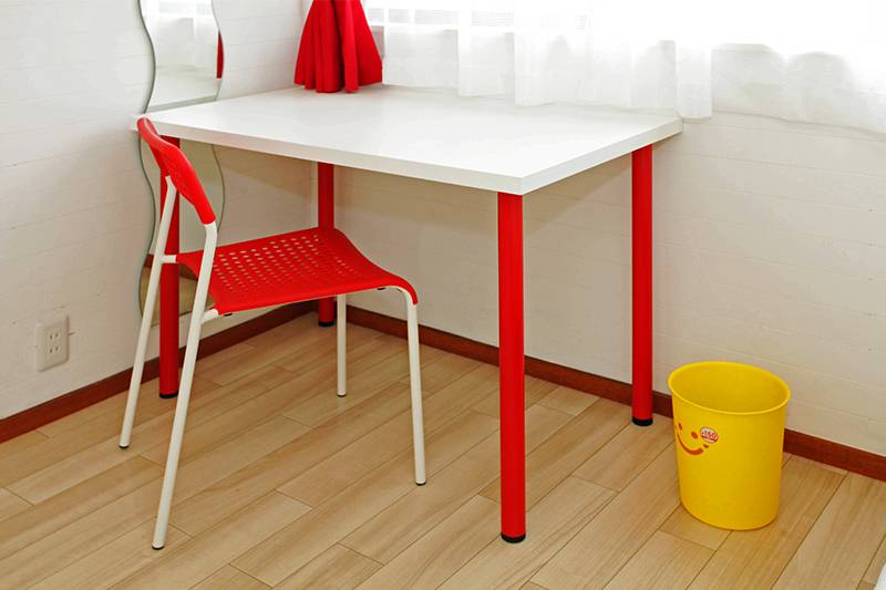 | リビング | 机、椅子、TV、冷蔵庫、電子レンジ、オーブントースター、炊飯器、エアコン |