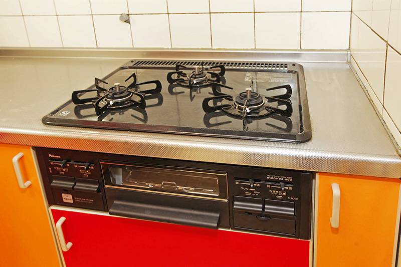 | キッチン | 冷蔵庫、電子レンジ、オーブントースター、炊飯器、エアコン、フライパン、鍋、3つ口コンロ、食器、グラス |