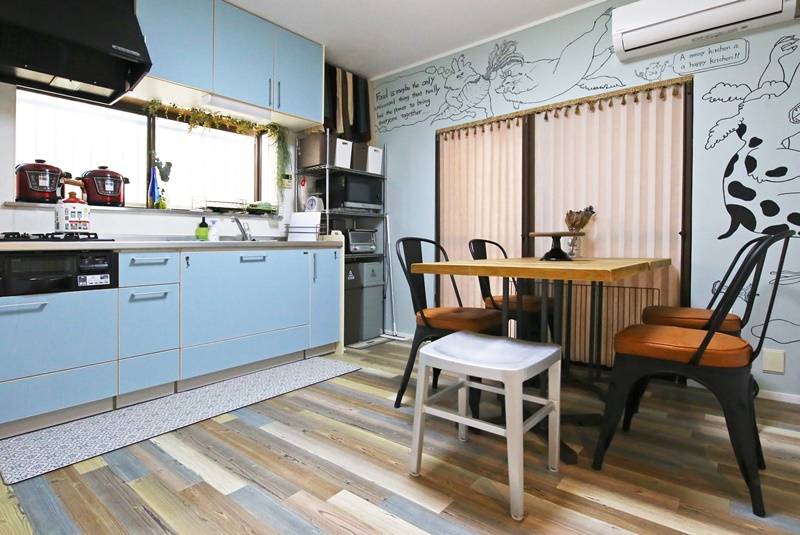 | キッチン | 3口ガスコンロ(グリル付き)、炊飯器2、電子レンジ、トースター、コーヒーメーカー |