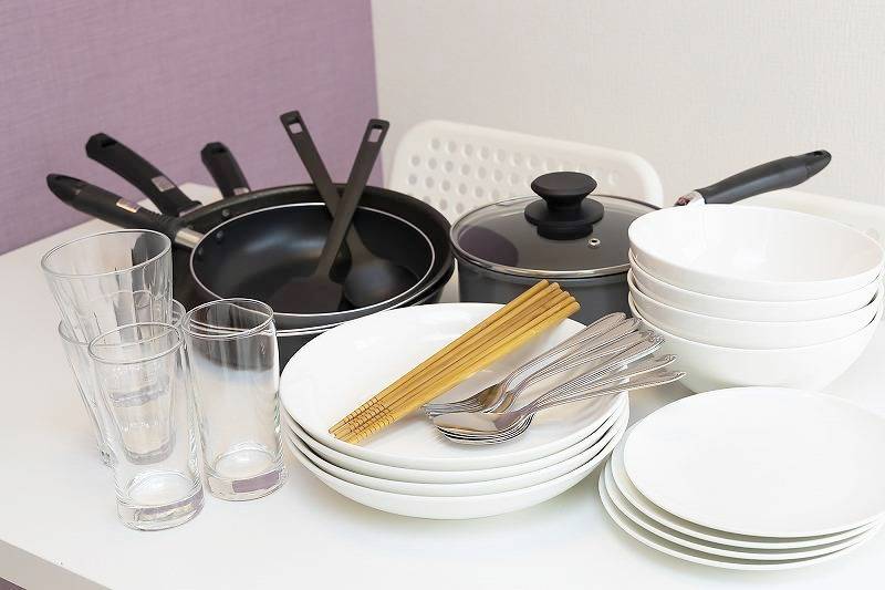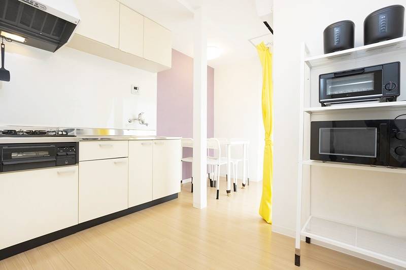 | キッチン | 電子レンジ、オーブントースター、炊飯器2台、コンロ、食器一式、調理器具一式 |