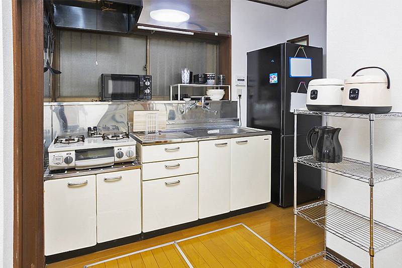 | キッチン | ガスコンロ、冷蔵庫、電子レンジ、電気ケトル |