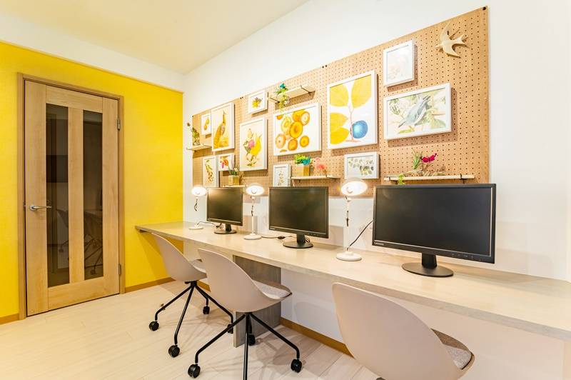 在宅ワークが増えてる今、ON OFFつけられるように共用部にワークスペースを設けました!