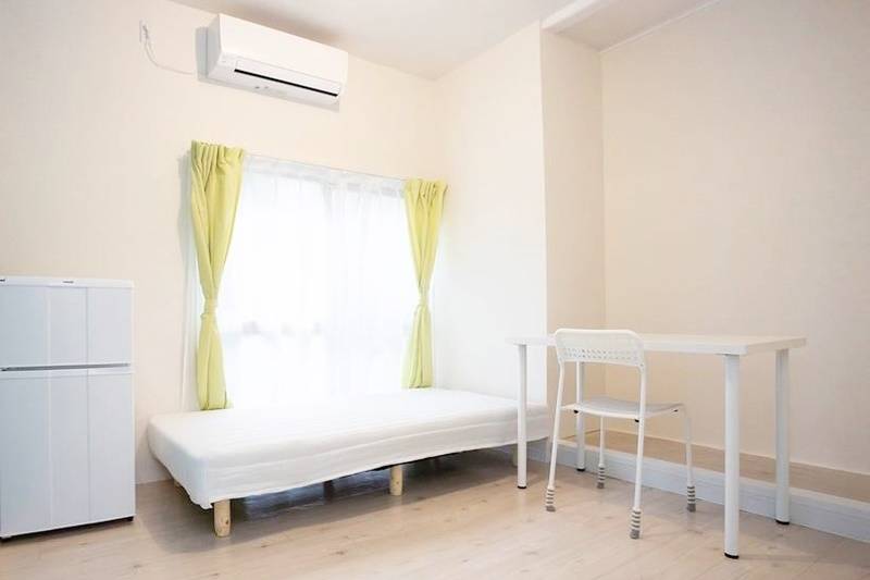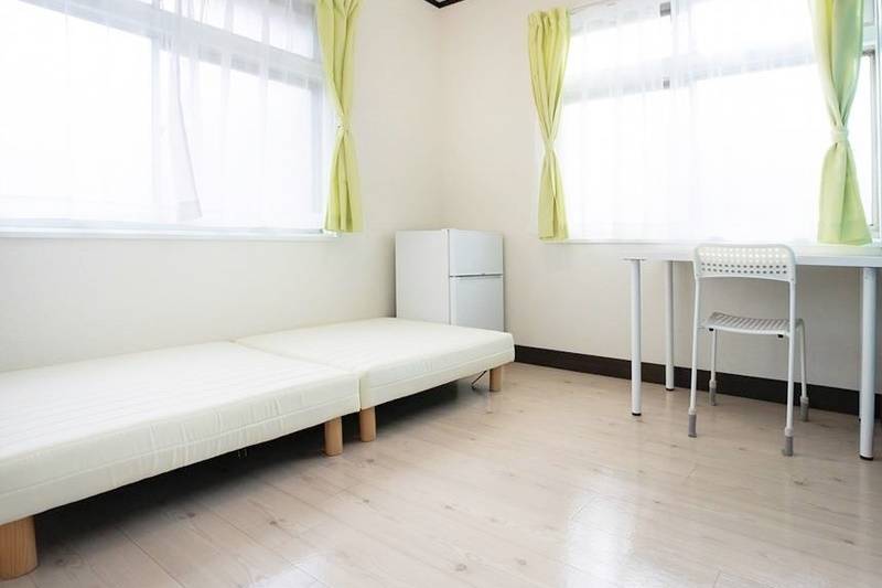 「各人個室」・・・机、椅子、ベッド、エアコン、冷蔵庫、ハンガーラック、クローゼット(一部の部屋)、物入れ(一部の部屋)・・・等をご用意しております。
