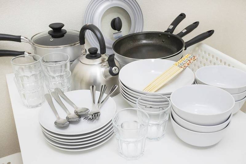 | キッチン | コンロ、電子レンジ、炊飯器2、オーブントースター、食器各種 |