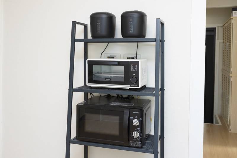 | キッチン | 電子レンジ、オーブントースター、炊飯器2台、3つ口ビルトインコンロ、食器一式、調理器具一式 |
