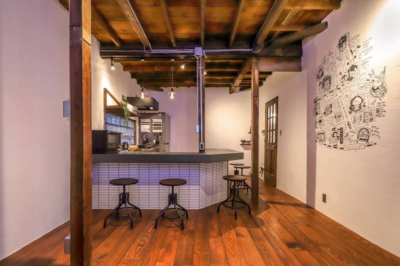 築80年の趣を生かし、梁や柱を魅せる仕上げや素材のセレクトがされた空間は、新しいけれど懐かしさも感じられます。