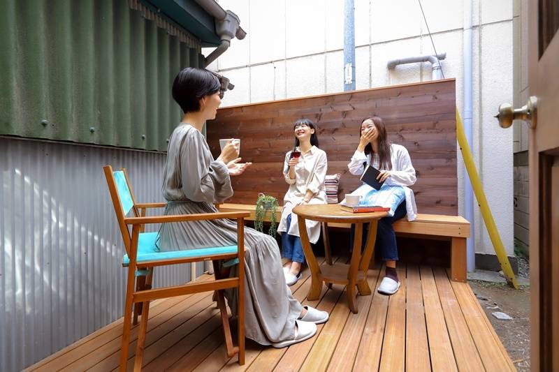 1階の共用リビングは、広めの調理スペースが取られたキッチンを囲みながらメンバー同士で会話を楽しむ姿が想像できます。リビングから出入りできるウッドデッキもいい憩いの場となりそう。
