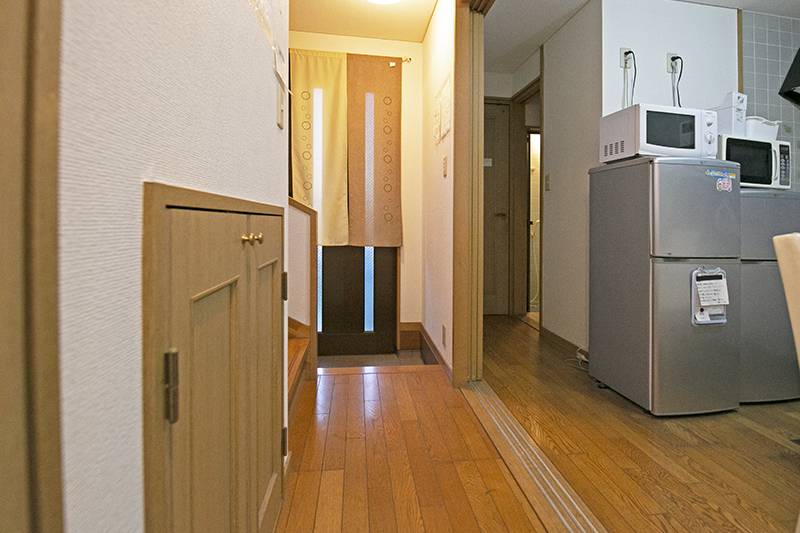 共用部分は冷蔵庫、ガスコンロ、電子レンジ、食器各種、家具類一通り揃っています。