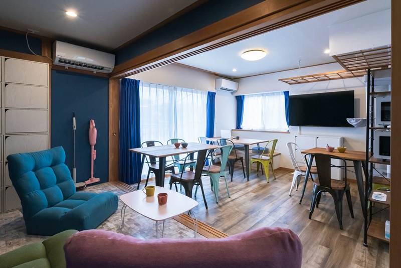 | リビング | テーブル3、イス10、座椅子3、テレビ50インチ |