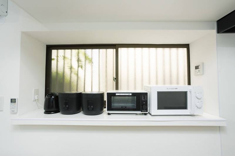 | キッチン | 電子レンジ2つ、オーブントースター、炊飯器2つ、電気ケトル、調理道具、食器一式 |