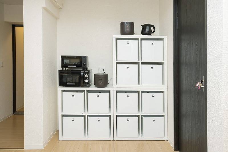 | キッチン | 電子レンジ2つ、オーブントースター2つ、炊飯器3つ、電気ケトル、調理道具、食器一式 |