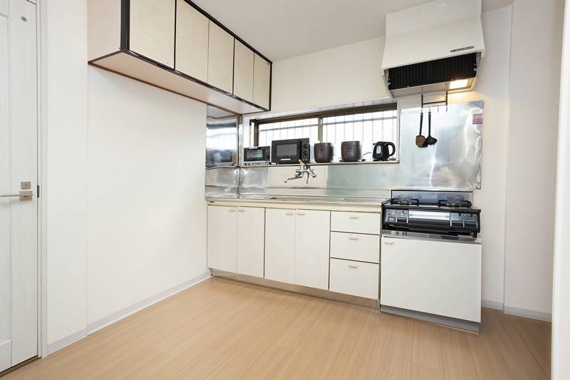 | キッチン | 電子レンジ、オーブントースター、炊飯器、電気ケトル、調理道具、食器一式 |
