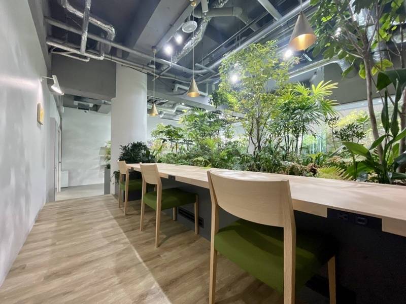 フルリノベーションされたワンルームタイプの居室(80室)と、テレワークにも適したワークスペース、会議室、フィットネススペース、カフェなどの充実した共用部、そしてバイオフィリックデザインによる緑豊かな空間を設けました。