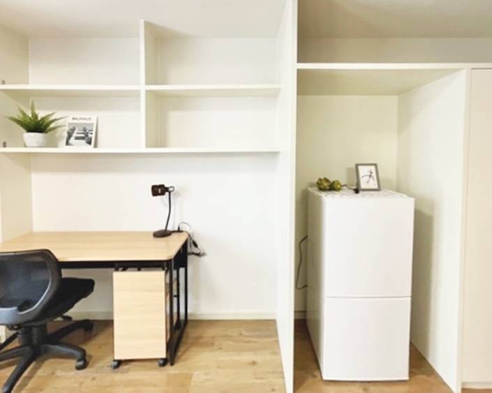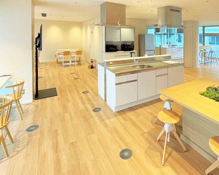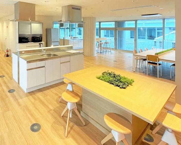 2022年春にリニューアルオープンした法人寮。共有スペースにはシェアキッチン、大浴場、ワーキングスペースを完備。平日の朝・夕には食事サービスもあり健康面もサポート!
