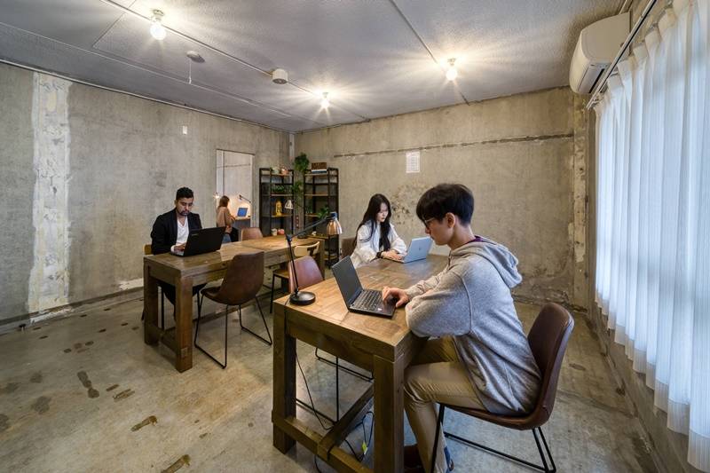 在宅ワークの方のために、ワークスペース完備。24時間利用可能、共用のWiFiも完備!ライブラリーもあり、お気に入りの本を置くことも♪仕事や趣味を起点に、あなたの新しい生き方が開けるかもしれません。