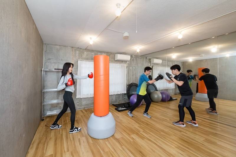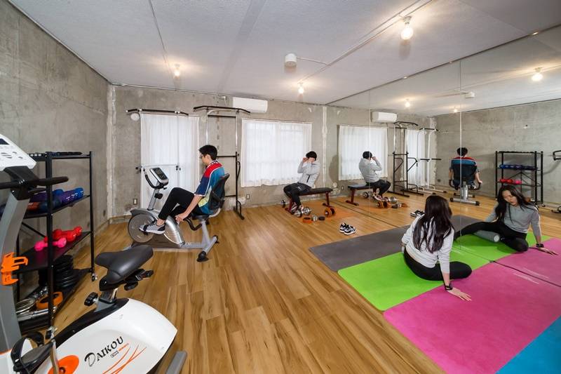 運動好きの方にはフィットネスルームがおすすめ。バイク、ダンベルなどがあり、全身鏡もご用意。日々の運動や運動不足解消にもお役立てください◎