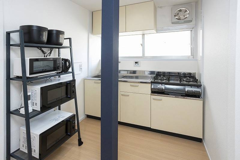 | キッチン | 電子レンジ2つ、オーブントースター、炊飯器2つ、電気ケトル、調理道具、食器一式 |