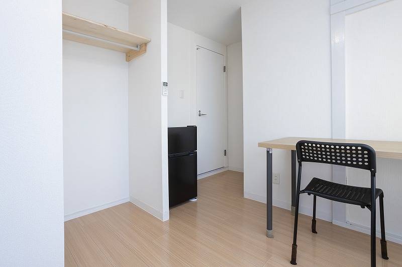 ベッド、エアコン、机、椅子、冷蔵庫、エアコン、TVジャック、クローゼット、収納、等。