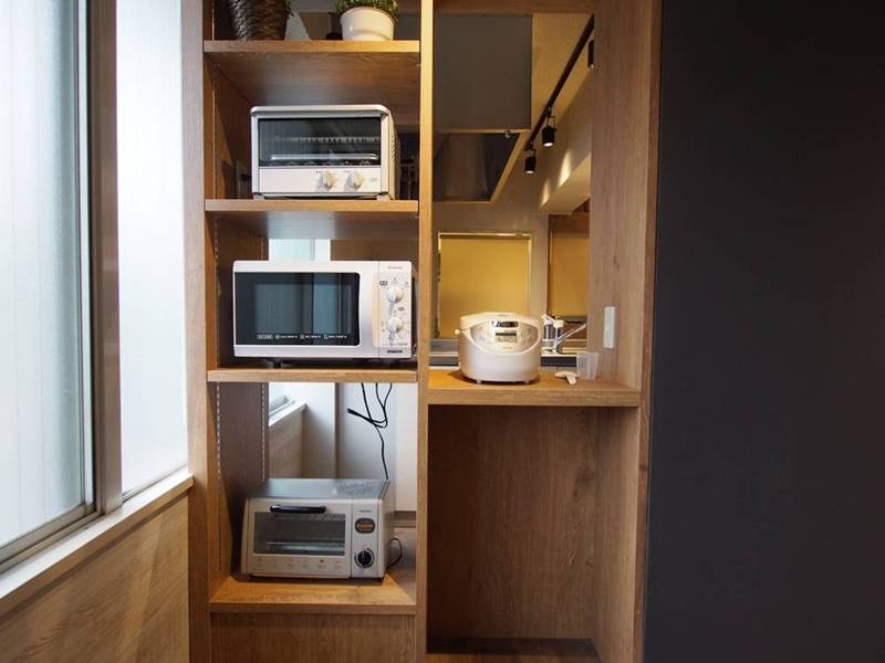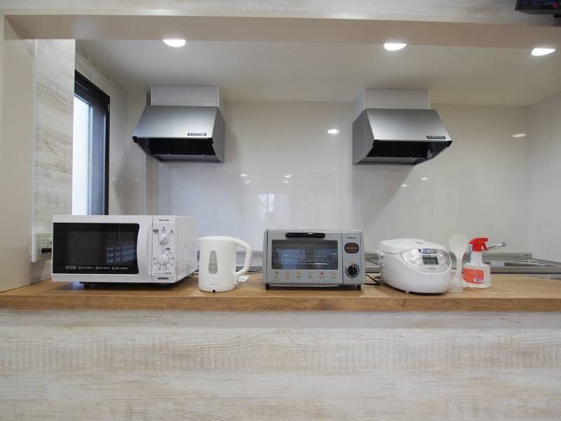 | キッチン | IH2口コンロ2、シンク2、炊飯器、ケトル、電子レンジ、トースター、 |