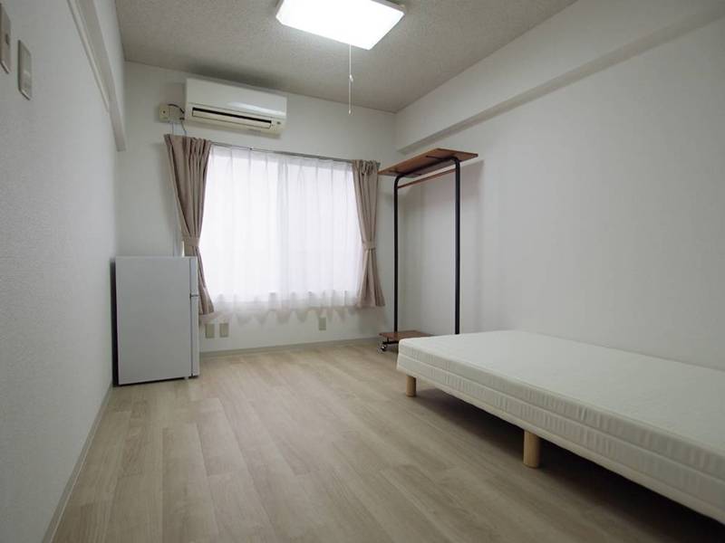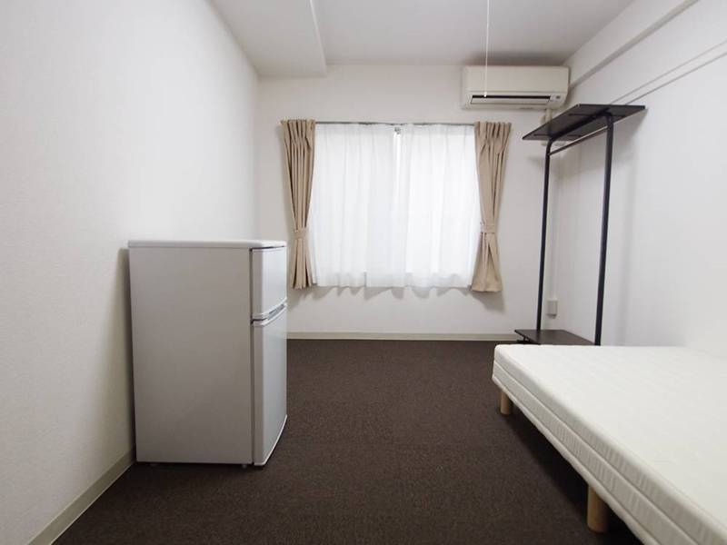 スタンダートタイプはベッド・冷蔵庫・ハンガーラックがあるシンプルなお部屋。水回りやキッチンは共用部にあるのでお部屋としては十分な広さです。