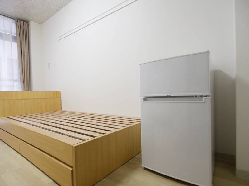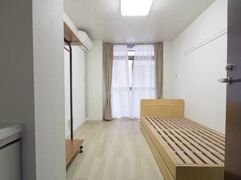各部屋にはエアコン・収納・ベッドフレーム(マットレスは各自)・冷蔵庫など、生活に必要な家具家電完備。