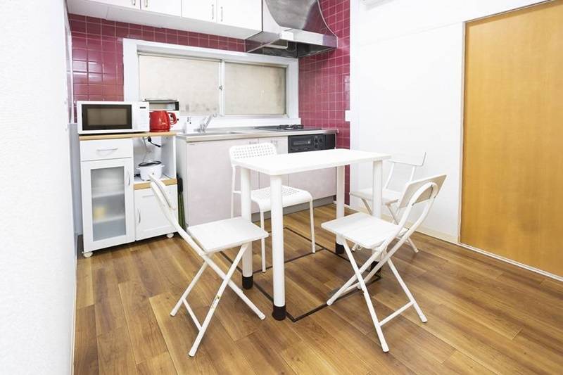 | キッチン | 2口ガスコンロ、電子レンジ、オーブントースター、ケトル、炊飯器、食器一式、調理器具一式 |