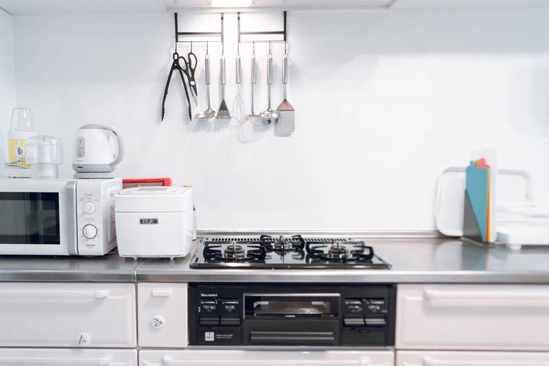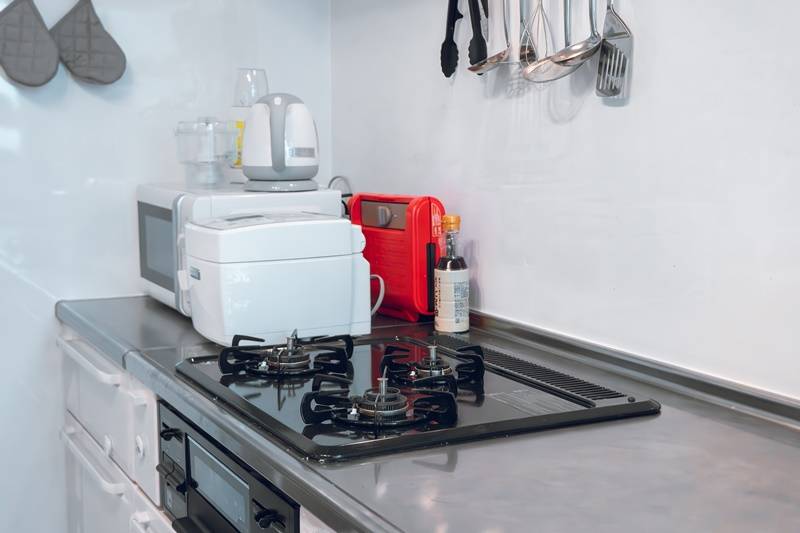 | キッチン | 3口ガスコンロ1、電子レンジ、炊飯器、ケトル、食器類 |