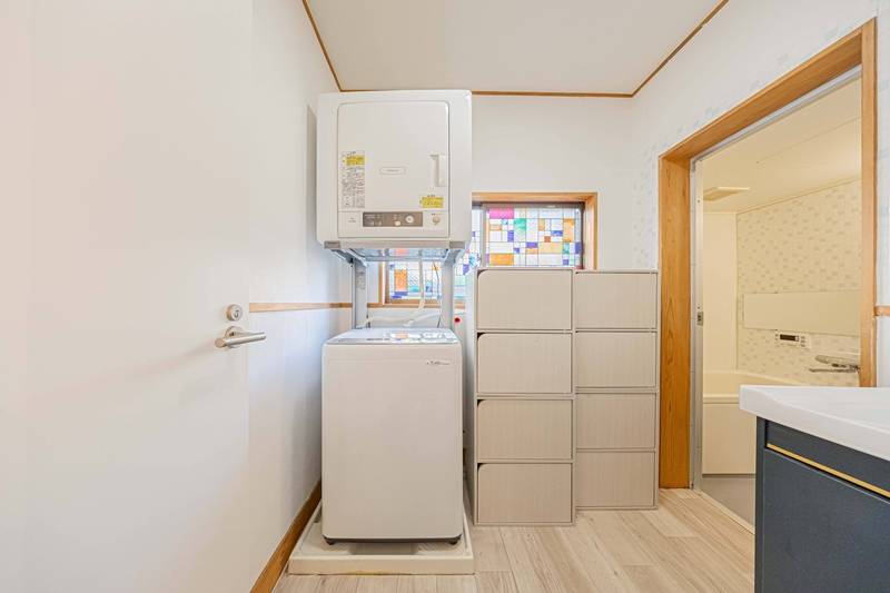 洗濯機、乾燥機が設置されており、雨でも安心。Wifiも無料で利用可能。テレビジャックが全室に入っていますので、テレビを居室に持ち込み可能。エアコン完備、もちろん全室鍵付き個室とうれしい設備が備わっています。