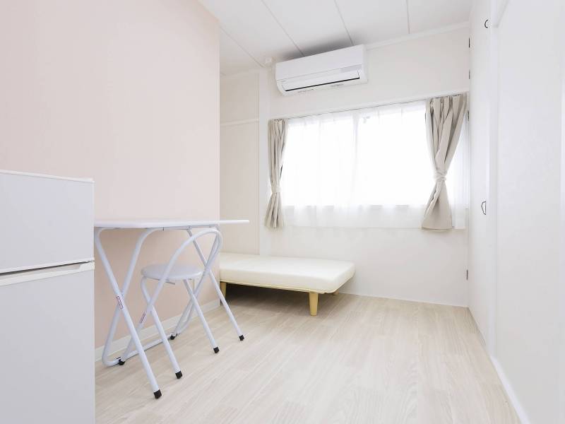 お部屋には Wi-Fi完備、冷蔵庫・ベッド・机・ハンガーラック付き。共用キッチンにも家具・家電・備品をしっかりご用意しています。