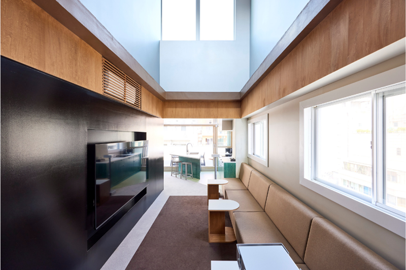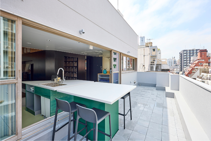 居室は全室水回り付き。共用スペースには、見晴らしの良いテラス、吹き抜けありの広々としたリビング、完全個室のワークスペース、シアタールームを完備。