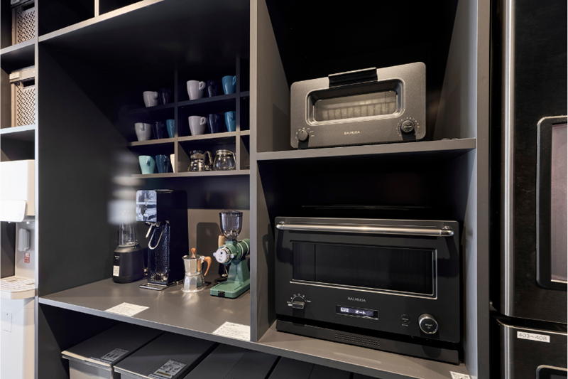 | キッチン | 3口IHコンロ×3台、冷蔵庫×3台、冷凍庫×1台、冷蔵冷凍庫×1台、製氷機×1台、オーブンレンジ×2台 、トースター×1台、炊飯器×2台、ホットプレート、ミキサー、コーヒー器具、ソーダストリーマー |