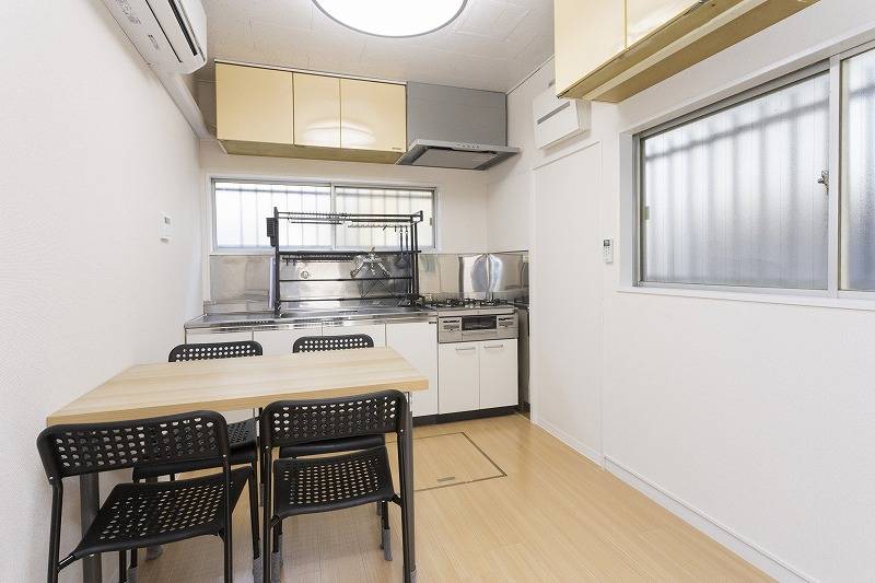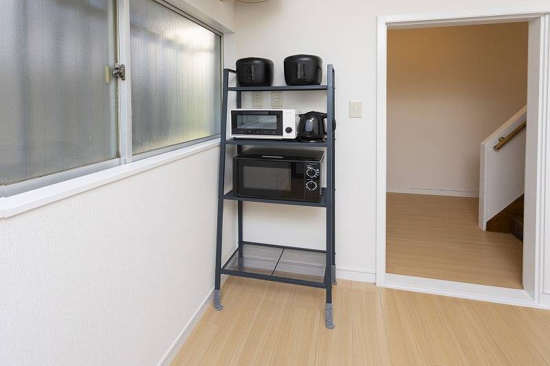 | キッチン | 3つ口ビルトインコンロ、電子レンジ、炊飯器2つ、オーブントースター、電気ケトル、食器各種 |