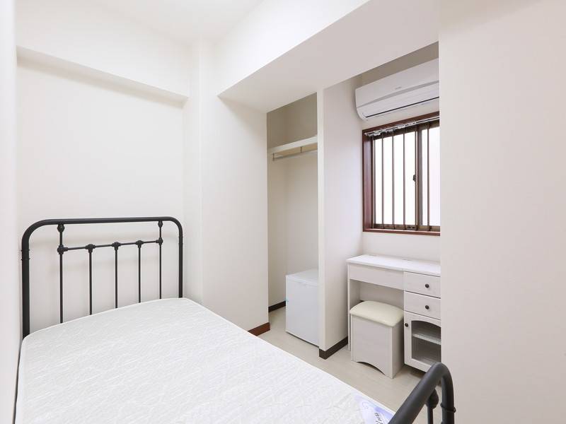 個室は16室。全て洋室で、ベッド、エアコン、冷蔵庫、ドレッサーデスク、収納スペースが完備されています。また、各階でWi-Fiが利用可能です。