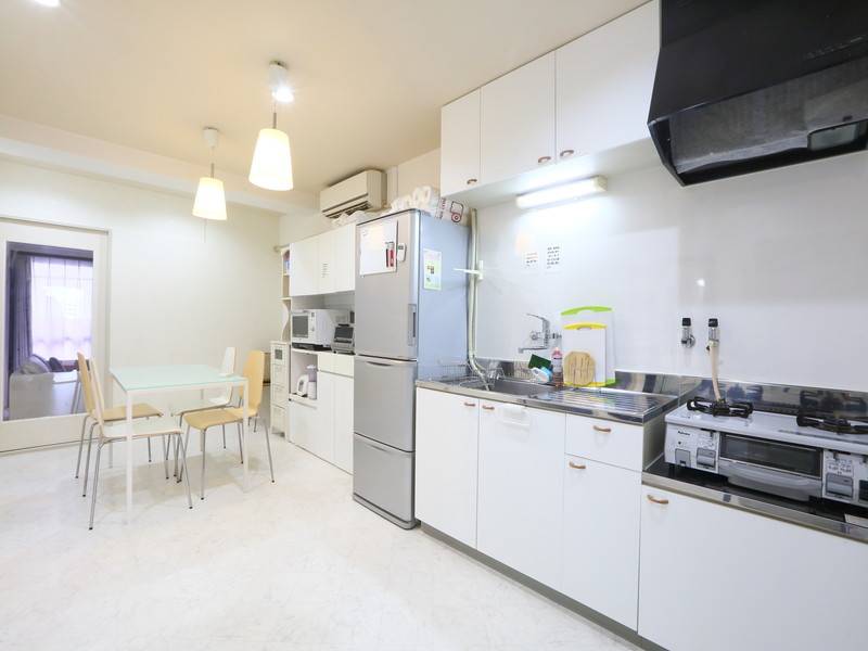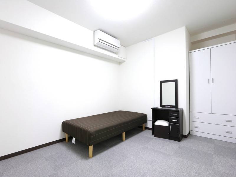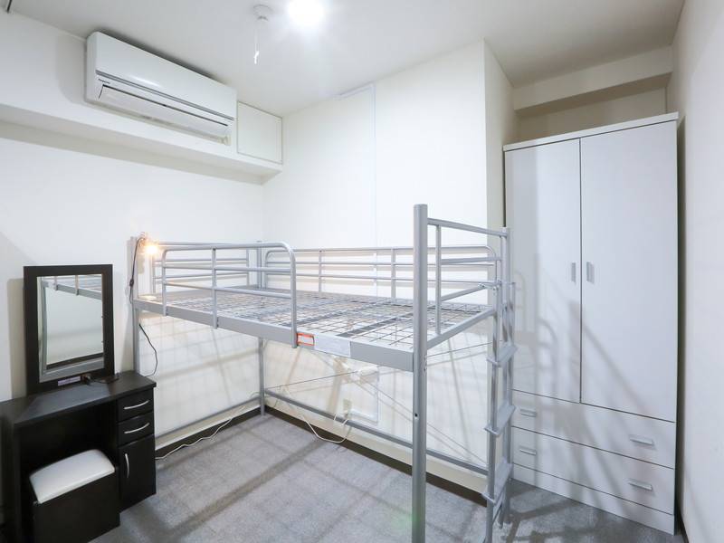 当シェアハウスは、4LDKのファミリータイプのアパートをワンフロア借り上げています。各個室はベッド・エアコン・ドレッサー・収納スペースが完備されており、快適なプライベート空間を提供します。また、共用エリアにはテレビ・冷蔵庫・洗濯機・乾燥機・掃除機・調理器具・食器類などが備えられています。