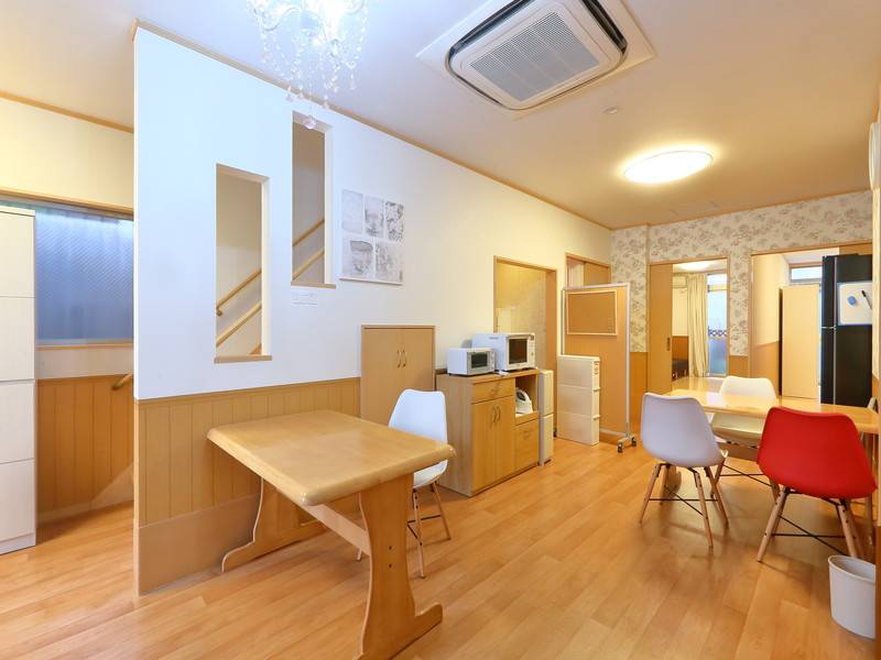 このシェアハウスは、元々シニアハウスであった建物をリユースしており、壁が分厚く防音性、耐火性に優れています。一部の個室にはトイレや洗面台が設置された広い部屋もあります。友達同士や姉妹での女性同士のペア入居も可能です。シェアハウスとしては珍しい駐車場付きハウスですので、車やバイクをお持ちの方も歓迎です。