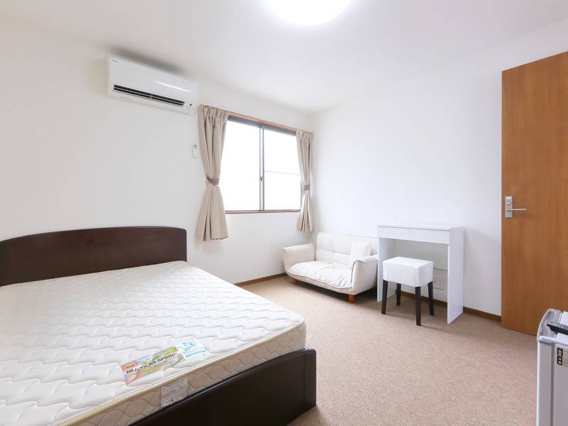 ハウス内部には、オーナーズセレクトのインテリアが配され、ソファやダイニングが用意されています。各居室にはベッド、エアコン、ドレッサー、クローゼット、ミニ冷蔵庫、テレビが完備されています。建物は2重錠でセキュリティがしっかりしているため、はじめての一人暮らしや女性の方でも安心して生活できます。