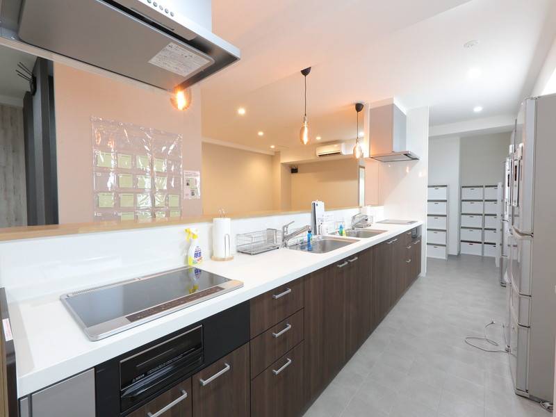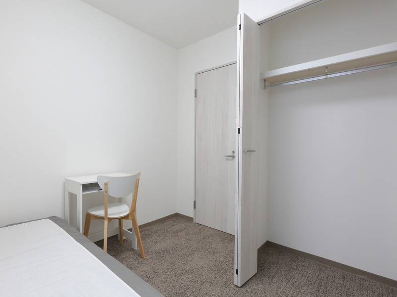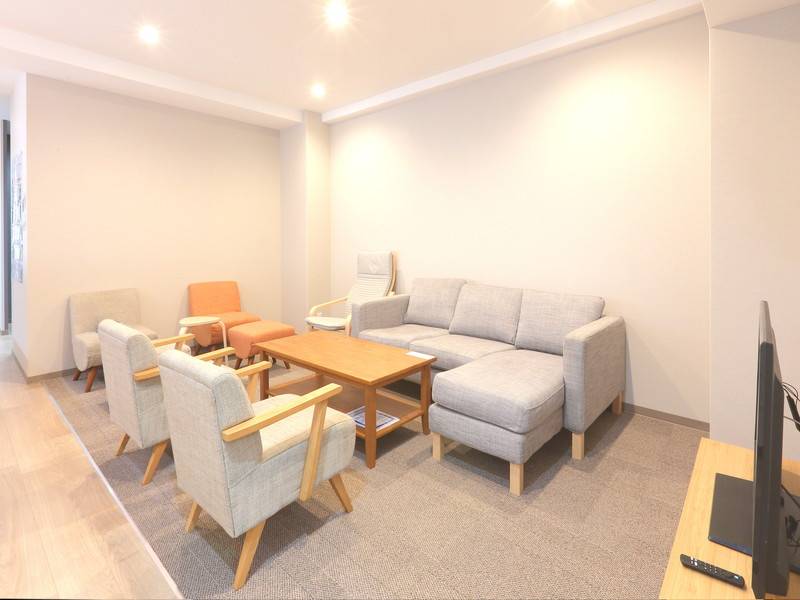 個々の部屋は広さ8~9㎡となっており、十分なクローゼット収納と有線LAN回線を全室に設置しております。共用エリアにはテレワークスペース、多目的ルーム、そして気分に合わせて使えるラウンジを設け、さらにNETFLIXを視聴できる大画面テレビも完備しています。