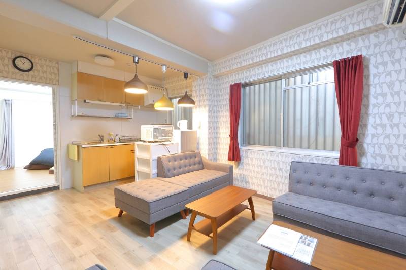 | リビング | テーブル、ソファ、共用TV 2台 |