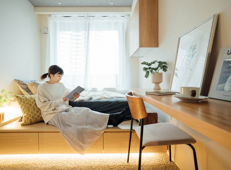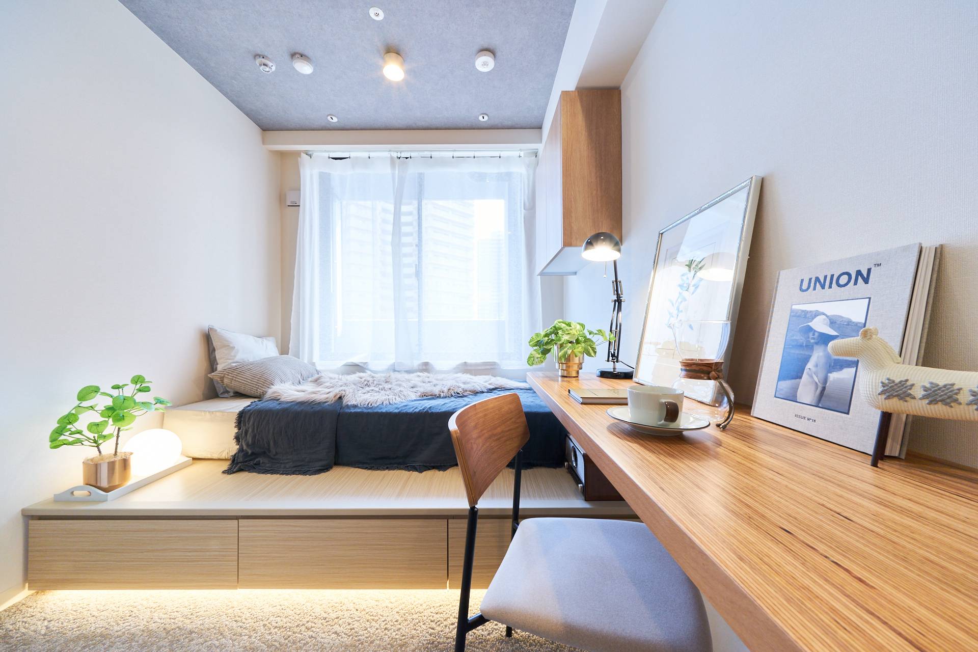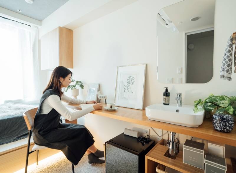 キッチン周りには、フリードリンク(コーヒー・紅茶等)・フリースナックも!一方居室は、賃貸のワンルームマンションのように、トイレ・シャワーブース・洗面の水廻りを完備。分譲マンション仕様の壁を採用しており防音性も高く、プライバシーにも配慮しています。また、24時間ゴミ出しOKのごみ置き場・宅配BOXもあり、スマートキーによるセキュリティ対策も万全と、暮らしやすさを重視したシェアレジデンスです。