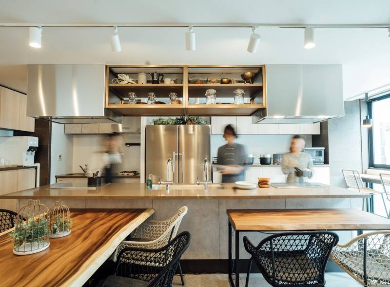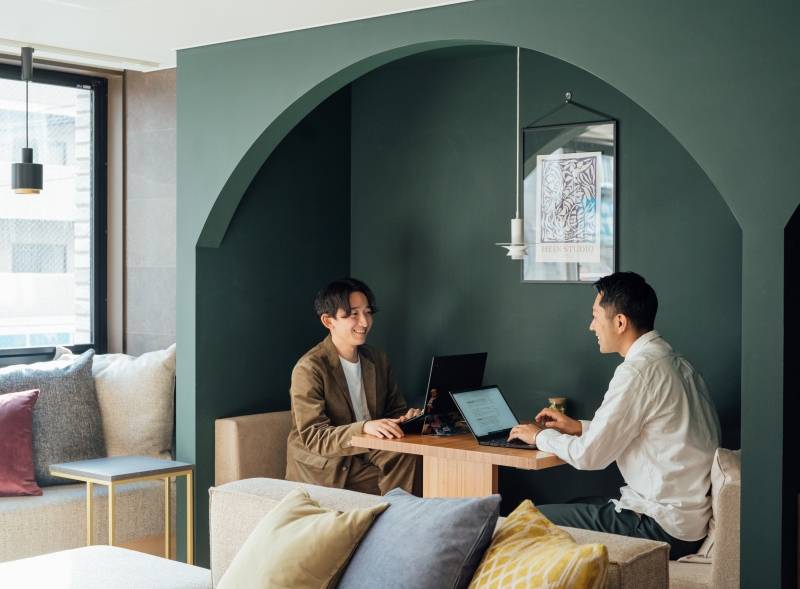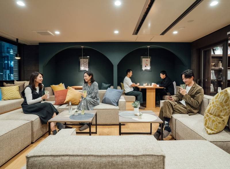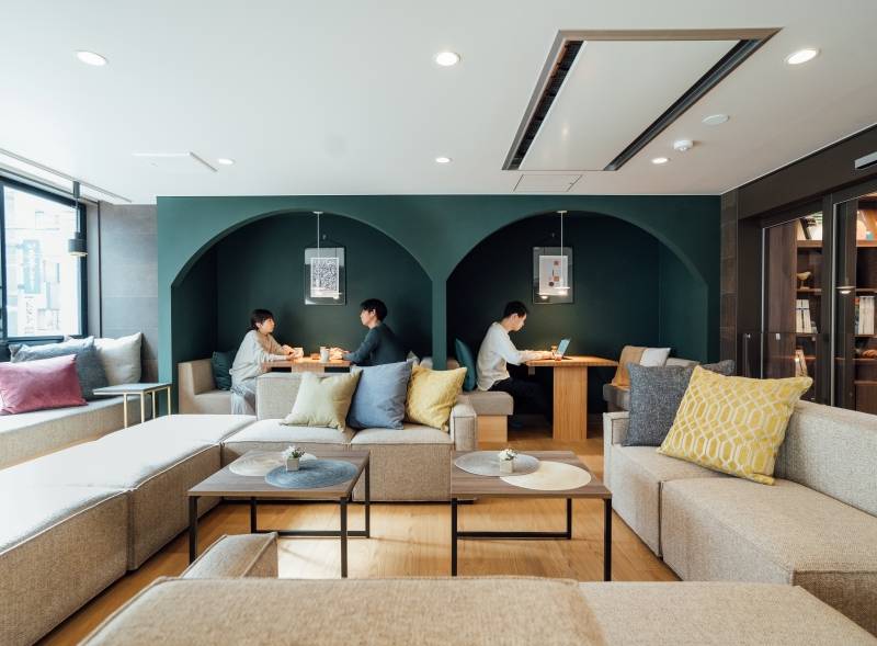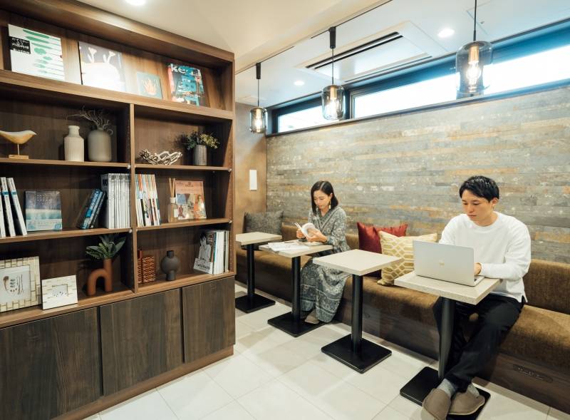 100㎡を超える共用ラウンジには、キッチン・リビングの他に、集中しやすいワークスペースも完備。もちろん、ラウンジの全席にコンセントを設置しており、また、フリーWi-Fiも利用できるため、いつでもどこでも気分に合わせてお仕事ができます。