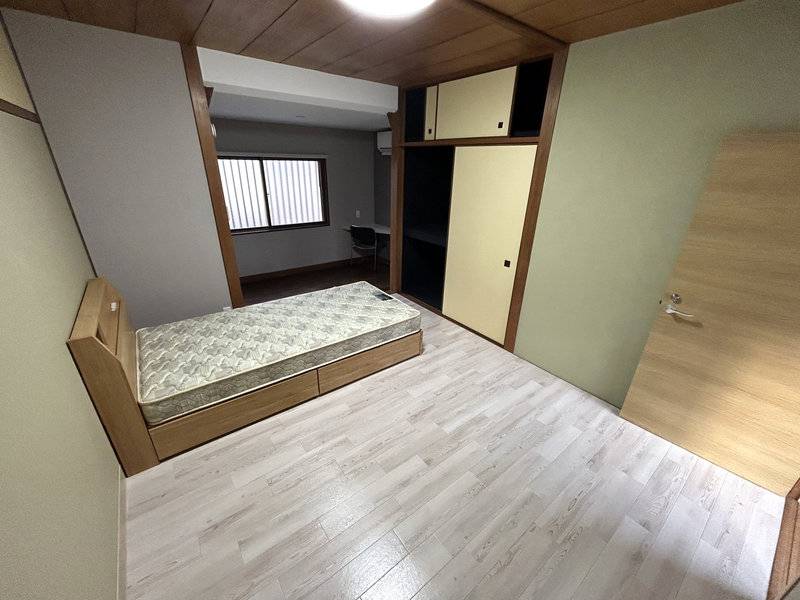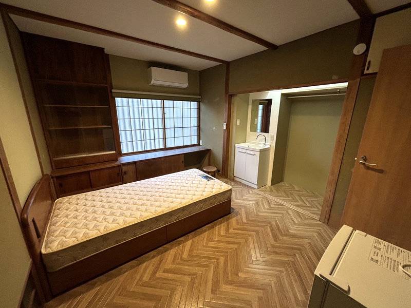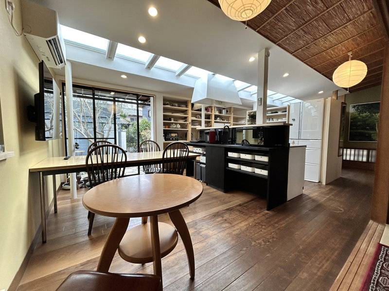 ここは寝屋川市の下町にあるシェアハウス、K HOUSE 門真。京阪本線萱島駅まで徒歩3分で、大阪市内や京都市内への通勤にも便利な立地です。茶室建築の手法を取り入れた数寄屋住宅の風流を残しつつ、一級建築士事務所・有限会社テ・コンによって快適さを追求してフルリノベーションされています。家具・家電はもちろん、全室に冷蔵庫と洗面台が完備されており、ストレスなく朝の身支度が可能です。トイレは2箇所、シャワーブースと浴槽付き浴室が1つずつあり、庭には足湯スペースや柑橘類・オリーブ・ブルーベリーなどの果樹園もあります。一級建築士のオーナー夫婦が住み込みで管理しているので安心です。シェアハウスでの共同生活とはいえ、個室は広く設計されており、洗面台や冷蔵庫も備えられているため、ひとりで集中したりゆったり過ごしたりしたい時間もしっかり確保できます。共用部には畳スペースやテーブル席があり、複数人が同時に利用しても快適に過ごせる工夫が施されています。シェア生活を楽しみながら、プライベートな時間も大切にできるK HOUSE 門真での暮らしをぜひご検討ください。