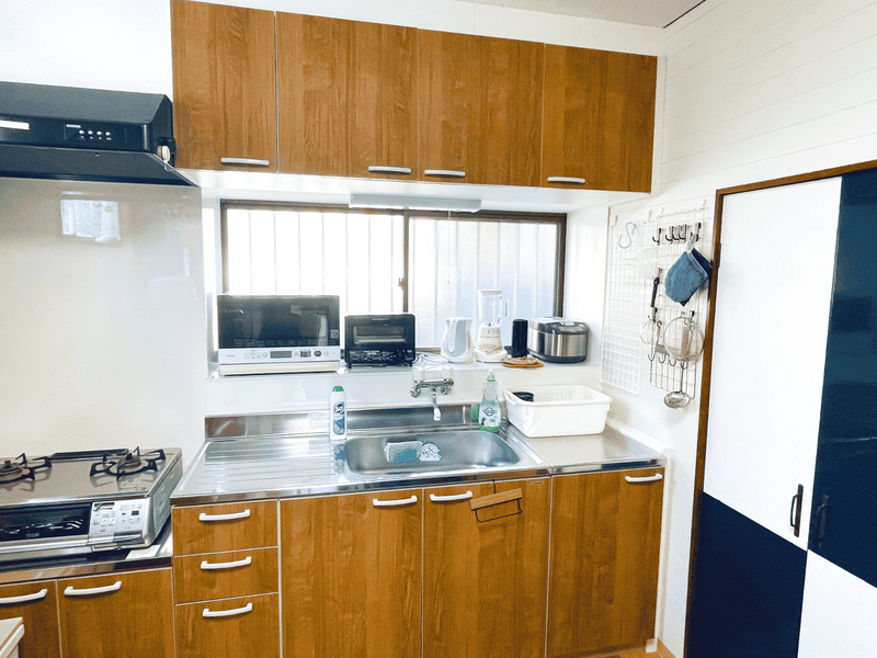 | キッチン | 2口ガスコンロ1、冷蔵庫2、炊飯器1、電子レンジ1、オーブントースター1、電気ケトル1、調理器具・食器類 |