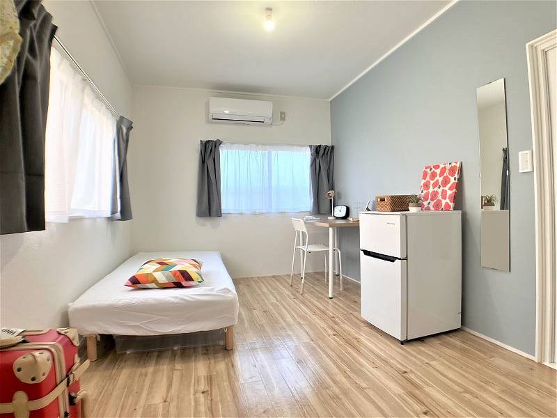 ★ハウス内はフルリフォームで綺麗。キッチン、洗濯機、シャワールーム、Wi-Fi等はご自由にお使いください。手軽にご入居いただけるよう調理家電、食器、洗濯機等を共有スペースにご用意。宅配ボックス付でネットショッピングを楽しめます。個室にはデスク、冷蔵庫、ベッド、収納、エアコン、照明、洗濯物干し、遮光カーテン、洋服ラック、ウォールフック、ハンガー、鏡等の生活の必需品をご用意しておりますので、荷物少なく入居できます。