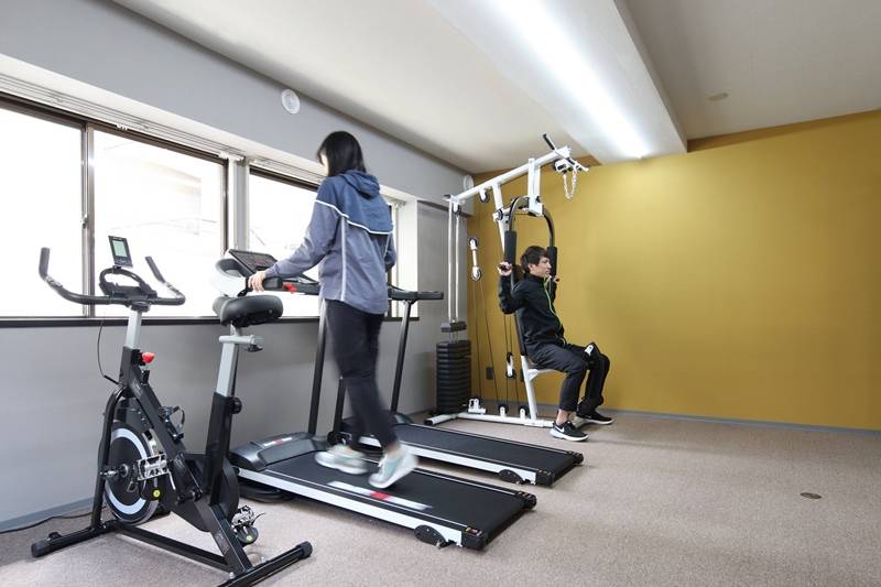 ラウンジにはソファー、アームチェア、スツールなど様々な設置がされており、広々と開放感のある空間。また、ワークスペース以外に個人のミーティングルーム、グループミーティングルームがあり、在宅ワークやオンライン授業のある学生さんにもピッタリ。 仕事や授業で疲れた後には、体を動かせるフィットネスルームをぜひご利用くださいね!エアロバイク2台、ランニングマシン2台、ホームジム1台、ベンチ1台が完備されています。