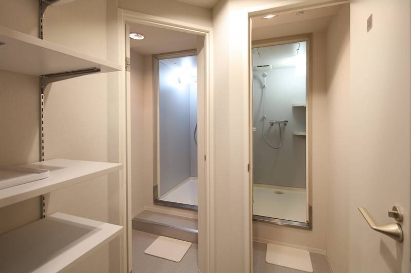 共有スペースはグレーなど落ち着いた色で統一し、シックな空間が広がります。