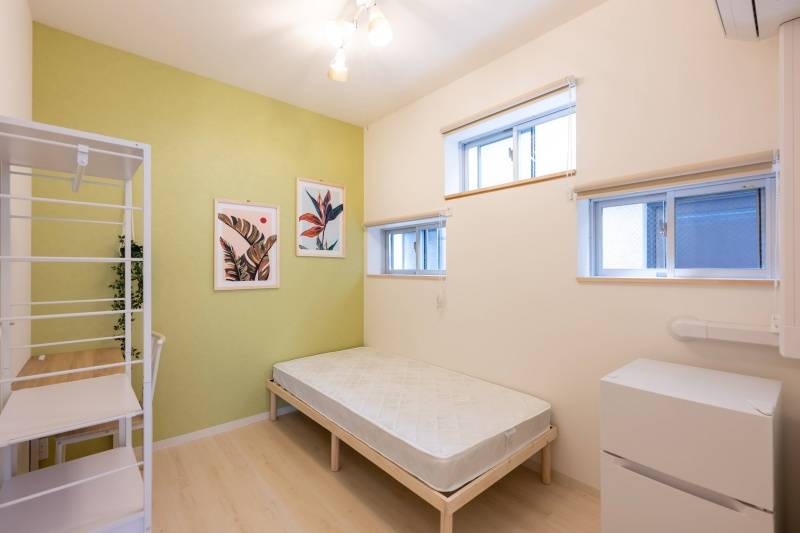 全8部屋、個室内にはエアコンやベッド、冷蔵庫などの家電製品や家具が備え付けられているので、すぐに暮らし始めることができます。