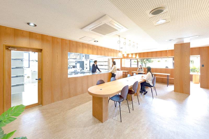 ラウンジは全体が見渡せる開放的な構造で、カフェのような落ち着ける場所になっています。