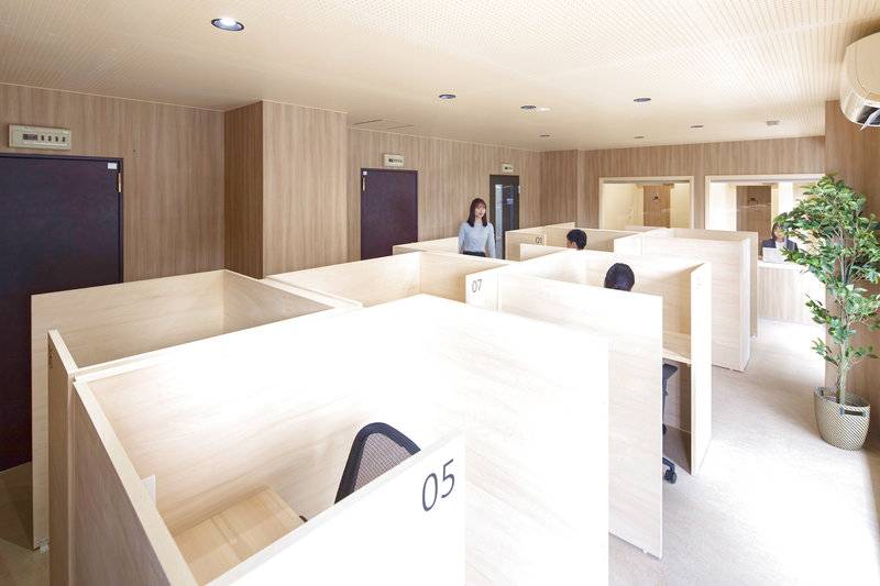 ワークスペースは作業に集中できる1人用の『DEEP WORKING』ブースと、電話やオンライン会議もできる『TELL WORKING』ブースを設置。