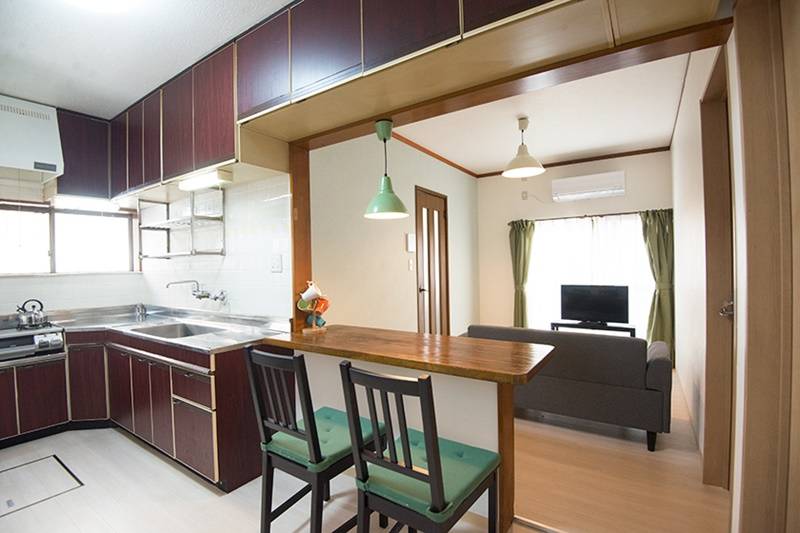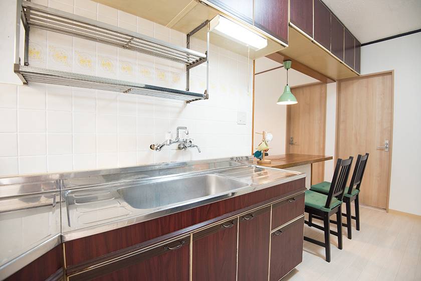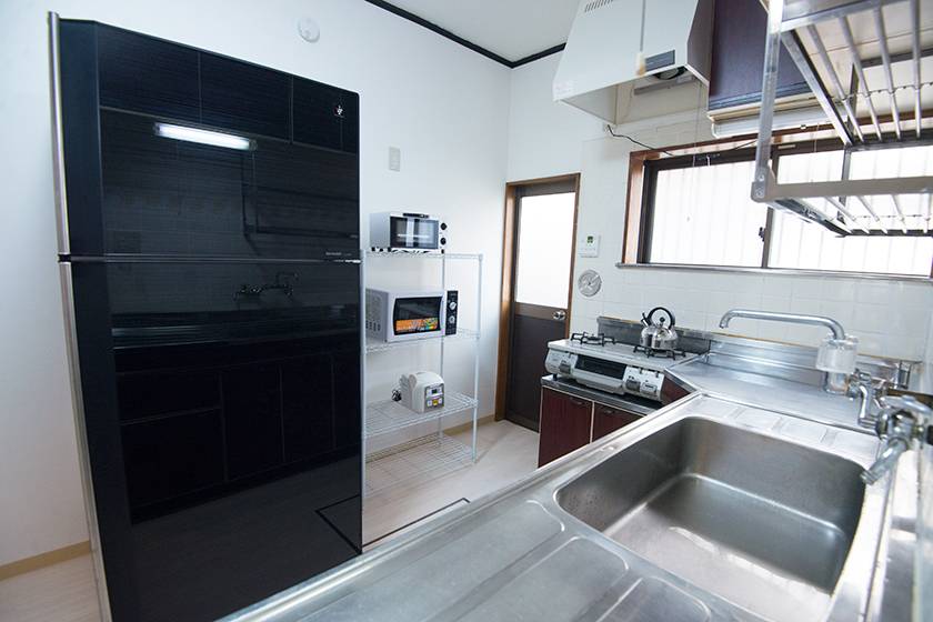 | キッチン | 冷蔵庫、電子レンジ、オーブントースター、炊飯器、コンロ、ダイニングテーブル |